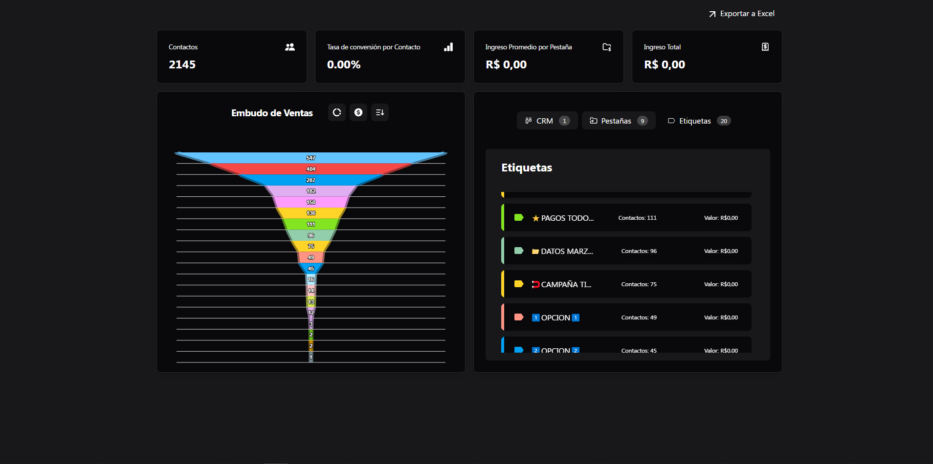 Con el tablero Kanban tendrás organizado todos tus contactos en las etiquetas de WhatsApp y las pestañas y CRM.
